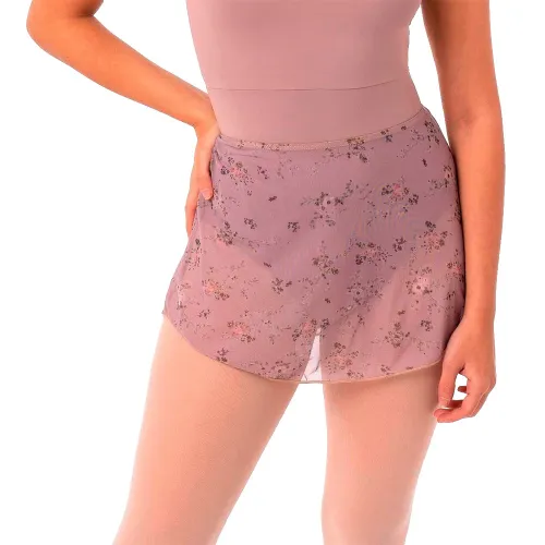 Floral printed tulle and an elastic waistband offer comfort and freedom of movement while keeping a romantic, delicate style ideal for classes and rehearsals.