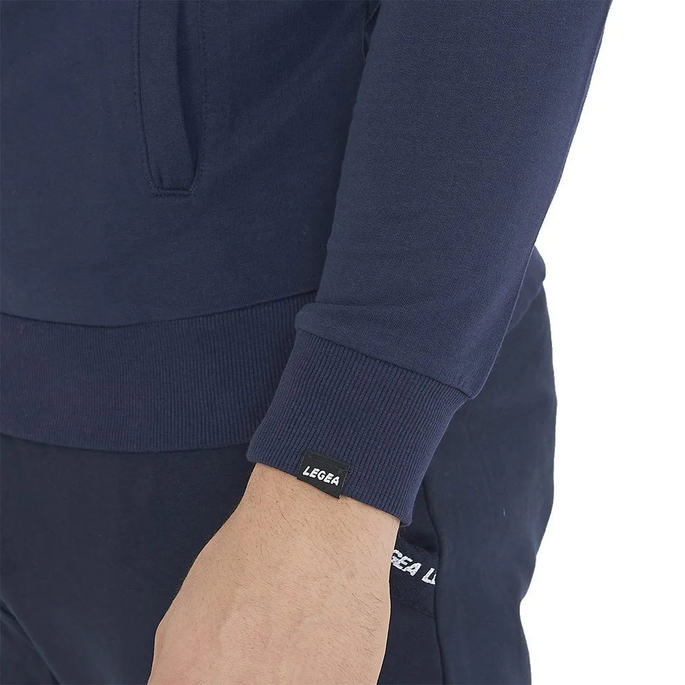 It features a full front zipper, two side pockets integrated into the seams, a fixed hood with a high collar, and ribbed finishes on the cuffs and hem.