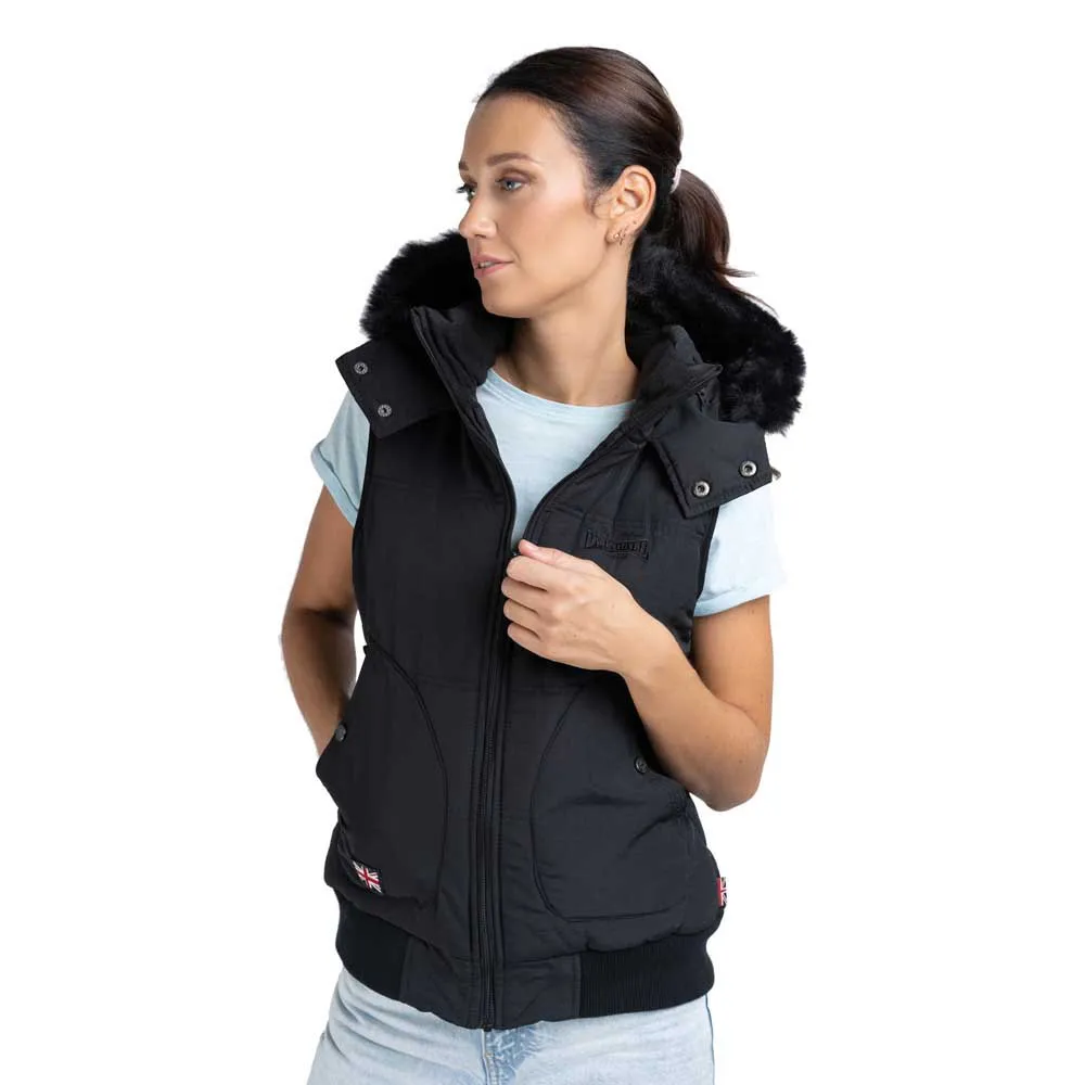 On cooler days, the padded vest with full zip from Lonsdale is the right choice. The large fur hood and the high collar protect the neck and head from the cold, while the embroidered logo details provide British flair. The large zip pockets and the rib-waistband complete the look. With a sweatshirt and comfortable trousers, a sporty casual outfit can be put together in no time at all. The Lonsdale vest - an evergreen for the transition period