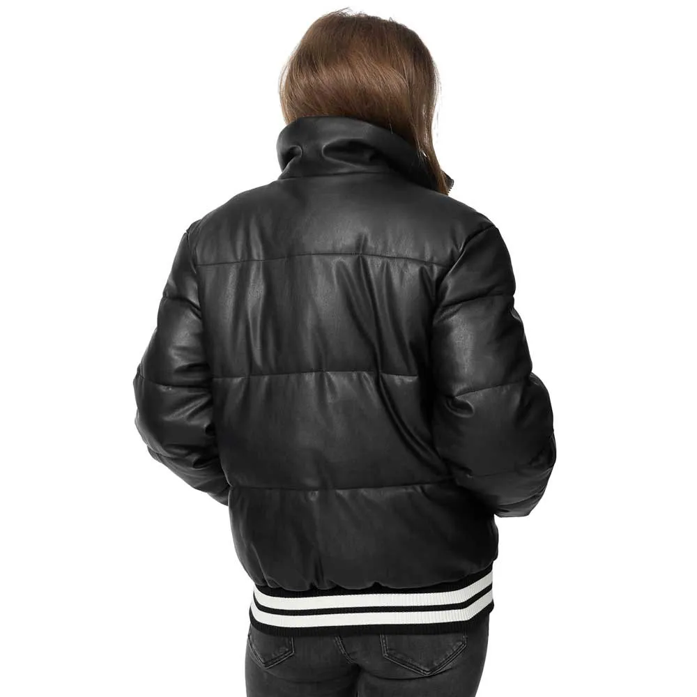 The jacket features a sleek black outer shell with white accents, providing a modern and fashionable look.