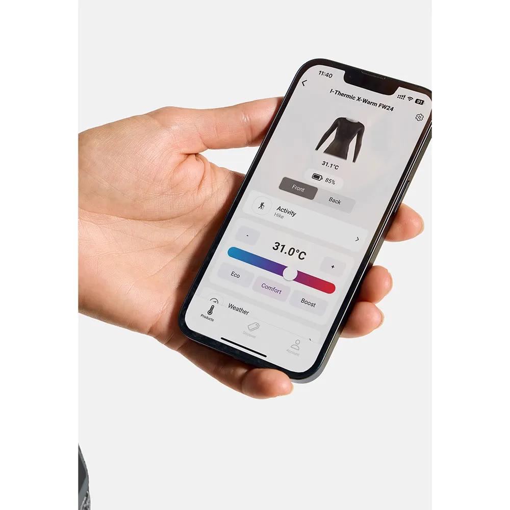 Developed for winter athletes who like to bring the heat, the reimagined I-Thermic X-Warm base layer top 2.0 builds on its predecessor with an integrated heating system that can be controlled via your smartphone to deliver warmth where you need it most.