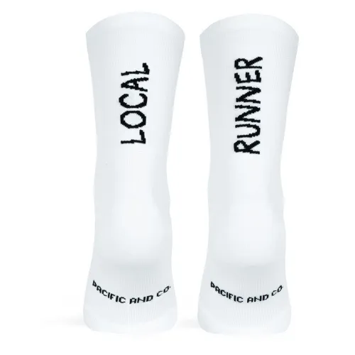 High-performance mid-height socks with a second-skin fit and gradual compression to support you in competition. They incorporate reinforcement in the heel, toe, and metatarsal for greater support and resistance during demanding workouts. Its design incorporates the message “LOCAL RUNNER” so that, wherever you are, you feel at home.