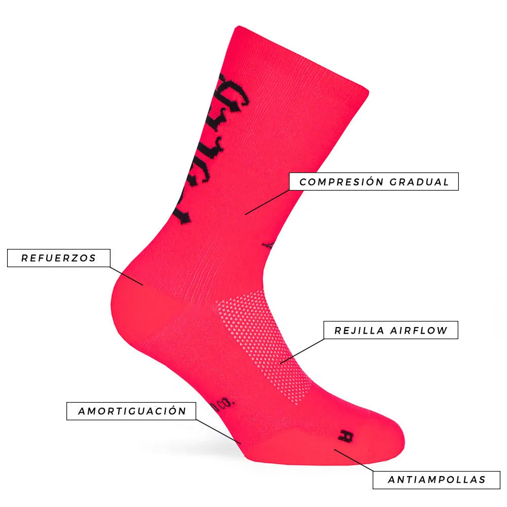 Designed for top-level competition, PACER socks combine a second-skin fit with graduated compression so nothing can hold you back. They feature reinforcements in the heel, toe, and metatarsal area, and a mesh in the instep that helps ventilate and wick away moisture when you pick up the pace. On the back, the word PACER appears in a modern and powerful font, a visual detail that gives them character without losing functionality.