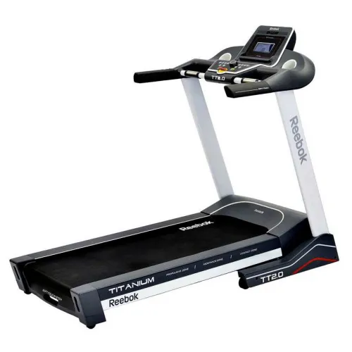 The Reebok Titanium Series TT2.0 Treadmill has been designed around the innovative TripleFlex Cushioning System. This system has been developed to mimic the three stages of movement while running. The front of the running deck incorporates an adaptive high-energy absorbent contact zone; this provides the runner with a reactive surface for the initial impact. The foot strike continues through the mid-stance zone where the cushioning system adapts to allow the foot to naturally flow through the motion. Finally the propulsion zone provides a firmer reactive surface to propel the runner forward in a continuous motion. The larger, more robust 2.75HP motor is capable of long periods of exercise at speeds up to 20kph with 16 levels of electronic incline. The spacious running area of the TT2.0 has been increased by 10cm in length in order to accommodate those runners seeking a more spacious experience. The larger deck equates to an increased maximum user weight of a solid 140kg. The TT2.0 provides dynamic goals to challenge the runner via its 17 pre-determined programs ranging from interval training to hill running. When this feature is combined with the multiple user profiles the TT2.0 can be tailored to each individual runner. To make the run even more personal the dual speakers with MP3 playback can add a soundtrack to the workout. In addition to this the built-in fan will keep the user cool and comfortable while providing a more natural outdoor running experience. The hand pulse sensors and built-in wireless receiver provide additional feedback through the treadmills upgraded 7? blue backlit LCD display. This gives the runner total control of their workout using the intuitive i-Drive Console System. After the workout the TT2.0?s easy fold design allows it to be stored away neatly. When it is time to be used again the treadmill has a built-in soft drop system designed to safely lower the running deck.