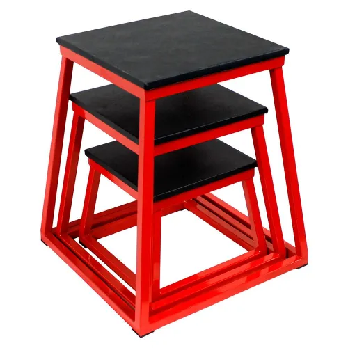 Plyometric boxes with steel structure with solid frame and non-slip solid rubber mat to prevent slippage. The tapered design allows for greater stability and jumping ease; Easy stacking for storage. It is a great tool for plyometric exercises, side jumps and forward jumps. Good for the development of general explosiveness in most sports.