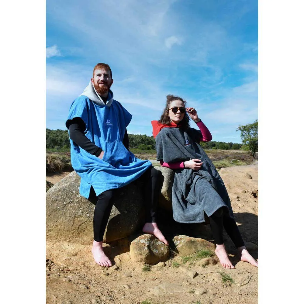 The ponchos are made with 330gsm 100% Microfiber, which is a highly absorbent material capable of absorbing up to seven times its weight in liquid.