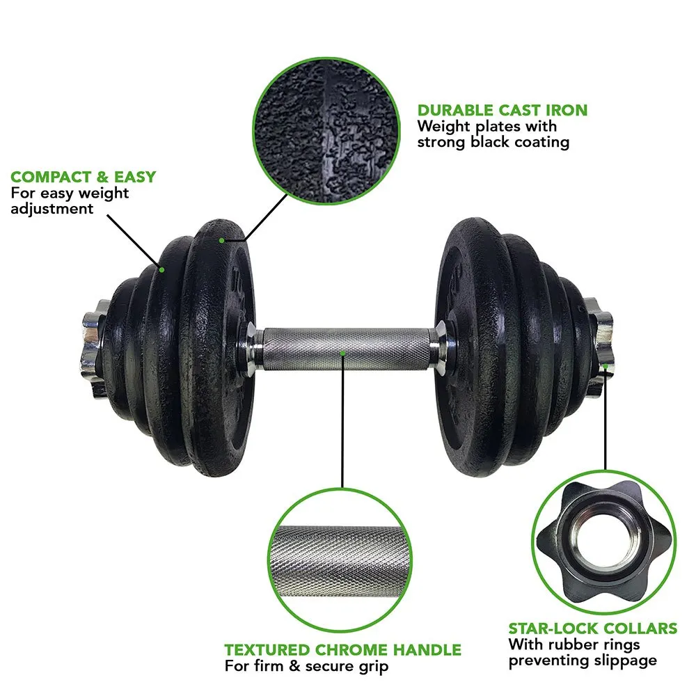 - The dumbbell can be adjusted in small steps due to the various plates.