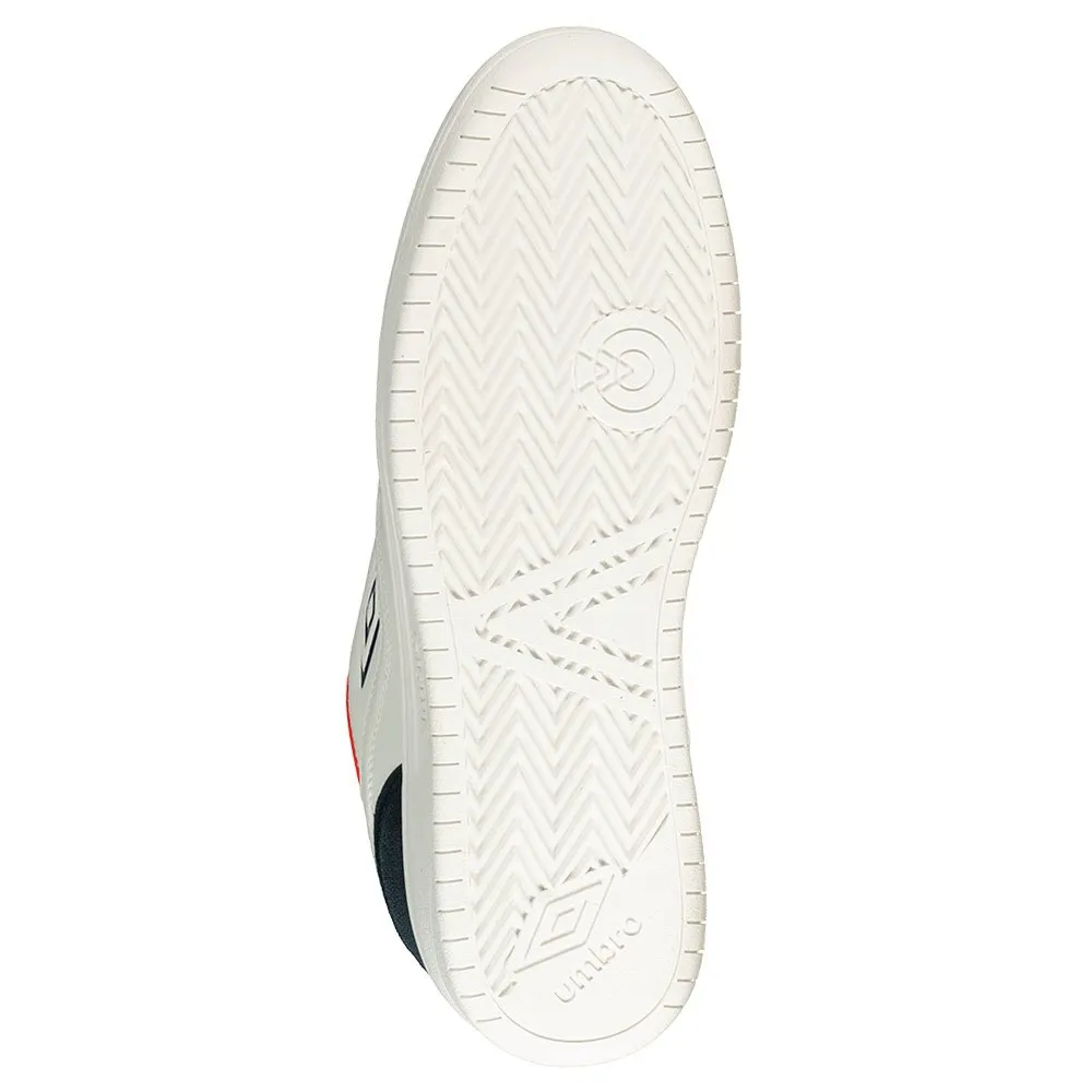 The UMBRO Pablo Trainers in White/Navy/Red are stylish men's shoes designed for casual wear and sporting activities. These trainers feature a classic low-top design with a combination of colors that add a touch of sophistication to any outfit. The white base color is complemented by navy blue and red accents, creating a vibrant and eye-catching look.