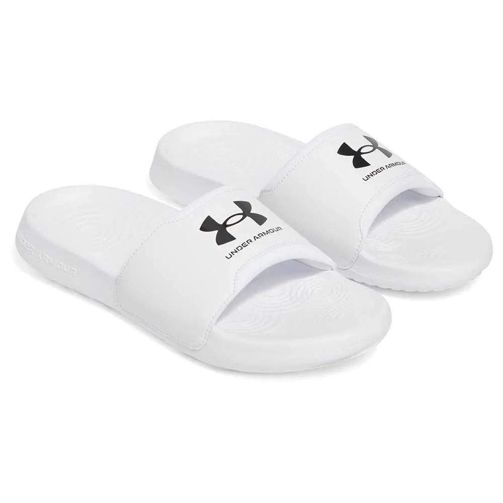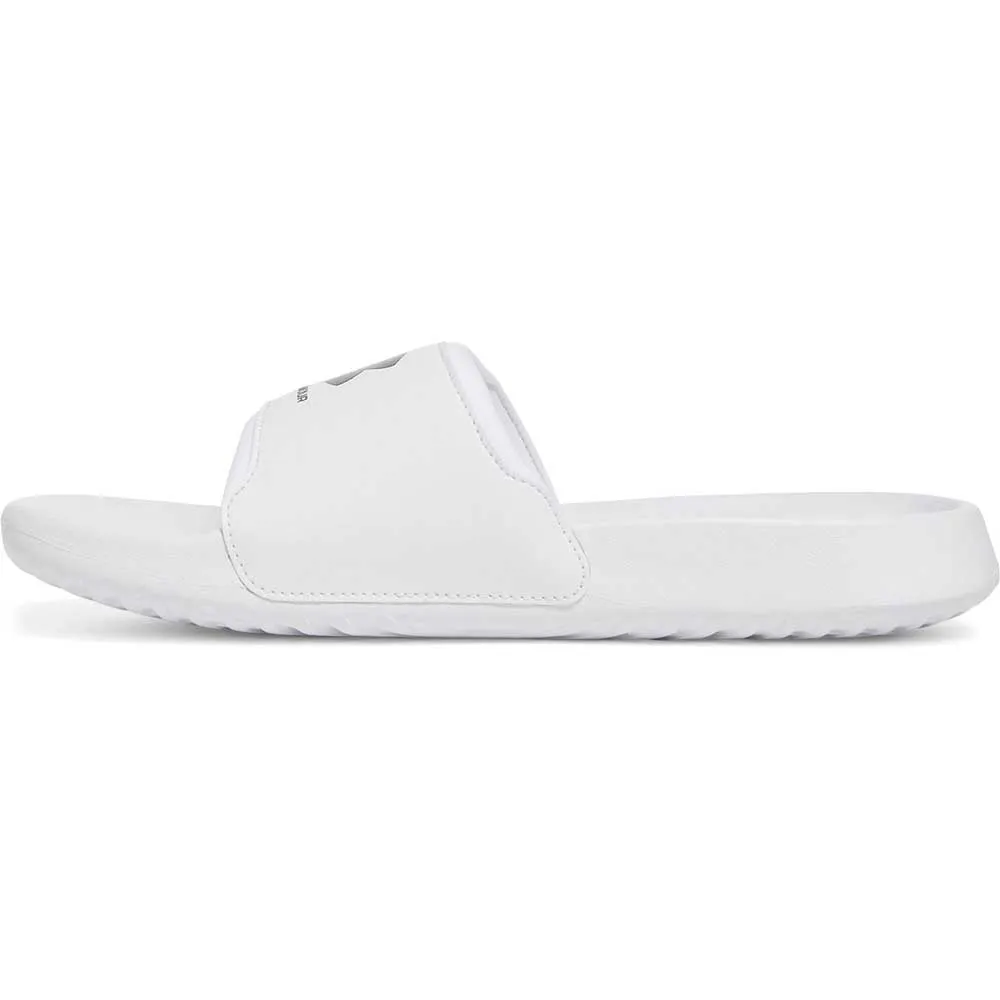 Functionality meets personalized fit with the adjustable synthetic strap. Featuring a soft foam lining underneath, this strap ensures a secure yet gentle hold on your foot, eliminating the uncomfortable rubbing and chafing common with lesser-quality slides. You can easily customize the fit to your exact preference, ensuring your foot stays stable and comfortable no matter where your day takes you. The iconic Under Armour logo on the strap adds a touch of signature athletic style that pairs effortlessly with any casual or sporty outfit.