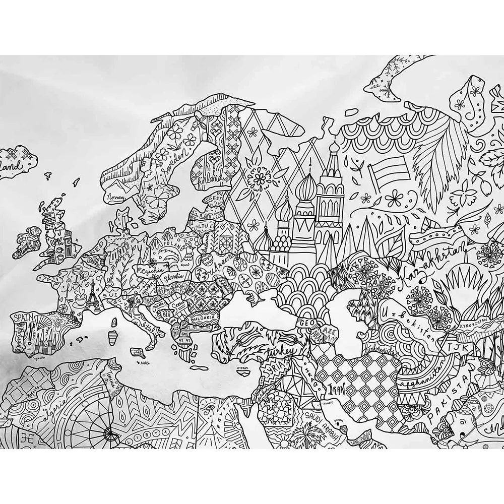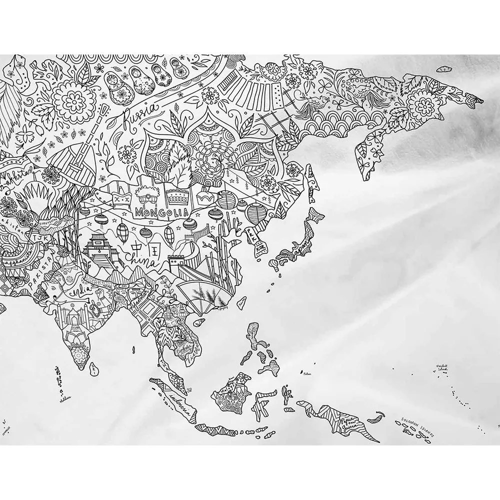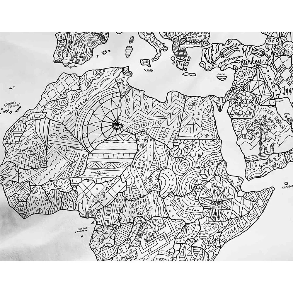 Características Awesome maps Toalla Mapa para colorear Mapa del mundo para colorear con garabatos específicos del país