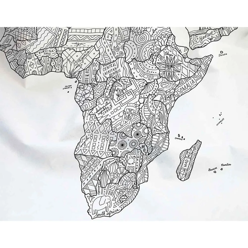 Awesome Maps Toalla Mapa para colorear Mapa del mundo para colorear con garabatos específicos del país