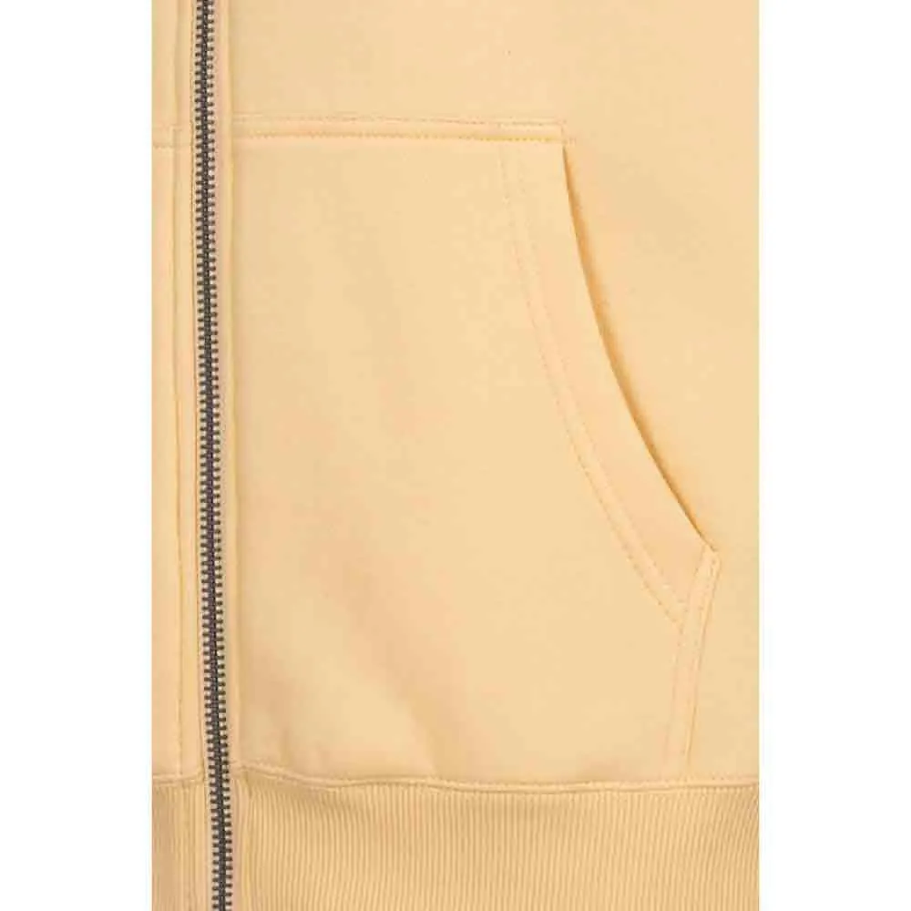 Chaqueta deportiva con capucha y cremallera completa, un bolsillo canguro, un pequeño logotipo estampado en el lado izquierdo del pecho y letras vintage grandes en la espalda.