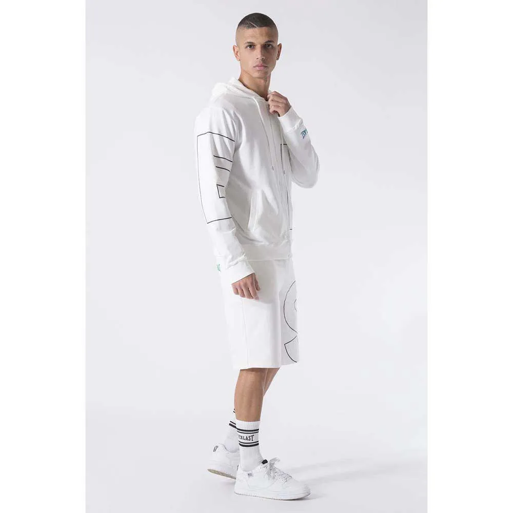 Chaqueta con capucha de cremallera completa en cómodo tejido polar elástico sin tejer. La prenda presenta el gráfico del logotipo macro de Everlast impreso en contraste. En la parte inferior de la manga, el logotipo de Everlast está bordado en contraste para completar los detalles de estilo.