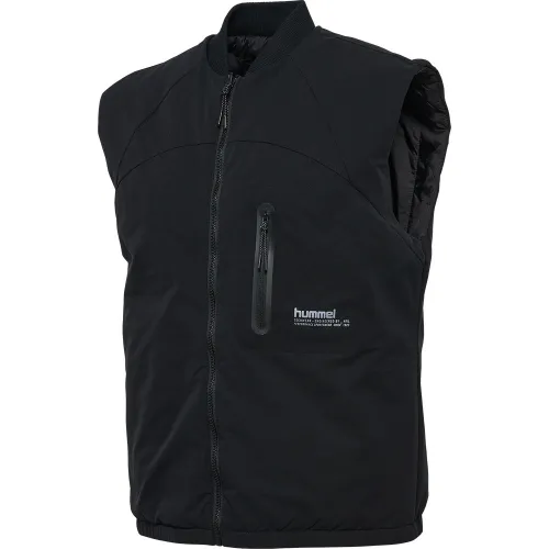 El CHALECO ACOLCHADO hmlTECH está confeccionado con un tejido resistente y presenta un logotipo de hummel en la parte delantera. Incluye una cremallera completa en la parte delantera, un bolsillo en el pecho para almacenamiento adicional y un tratamiento repelente al agua 100 % libre de flúor para protección contra los elementos.