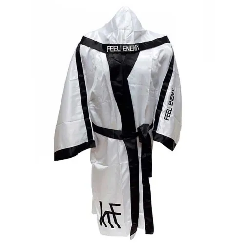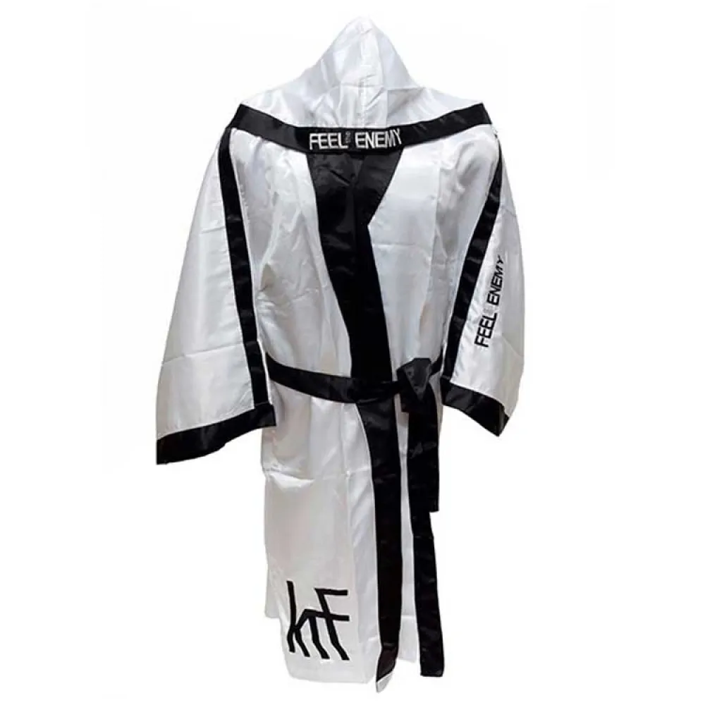 Cada detalle de la bata KRF Siente al Enemigo está construido pensando en las necesidades de un luchador. El diseño no es solo para mostrar; es para la función. La bata proporciona un ajuste seguro y ajustable, lo que te permite moverte libremente y cómodamente mientras realizas tus preparativos finales. La icónica marca "Siente al Enemigo" sirve como una marca de un competidor dedicado, alineándote con un legado de luchadores que entienden la guerra psicológica de los deportes de combate. Esta es la capa final esencial para tu equipo de la noche de la pelea, completando tu apariencia profesional y estableciendo el tono para tu desempeño.