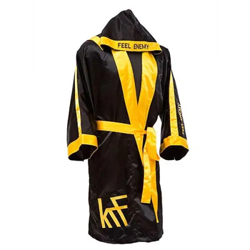 Cada detalle de la bata KRF Siente al Enemigo está construido pensando en las necesidades de un luchador. El diseño no es solo para mostrar; es para la función. La bata proporciona un ajuste seguro y ajustable, lo que te permite moverte libremente y cómodamente mientras realizas tus preparativos finales. La icónica marca "Siente al Enemigo" sirve como una marca de un competidor dedicado, alineándote con un legado de luchadores que entienden la guerra psicológica de los deportes de combate. Esta es la capa final esencial para tu equipo de la noche de la pelea, completando tu apariencia profesional y estableciendo el tono para tu desempeño.