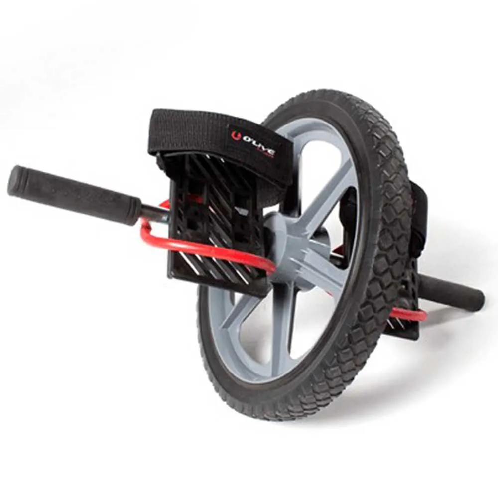 Utiliza esta rueda como rueda para abdominales, por lo que no le he puesto el soporte para los pies ni los elásticos rojos ni el velcro, solo la rueda con un palo de metal, que funciona perfectamente. Debido a que la rueda es mucho más grande que las ruedas para abdominales normales, entrena tus abdominales a otro nivel - genial :-)