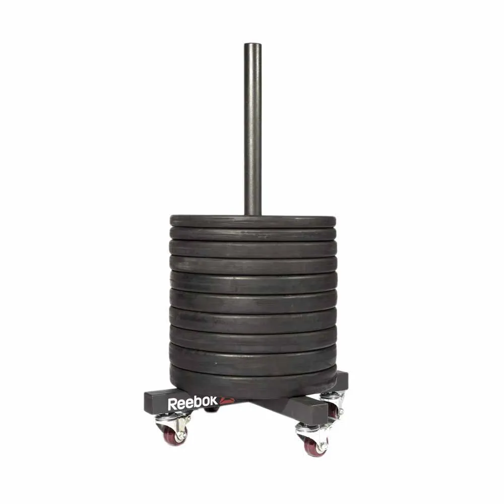 El rack de discos Olímpicos Reebok proporciona un fácil acceso a sus discos Olímpicos y es el rack que suelen encontrar en los principales eventos de levantamiento de pesos junto a la plataforma de elevación.