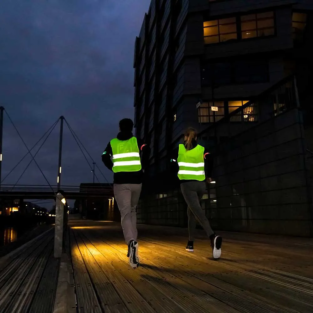Este chaleco sintético, sin capucha, está diseñado con elementos reflectantes estratégicamente colocados que maximizan su visibilidad en entornos con poca luz. Las tiras altamente reflectantes captan y reflejan la luz de los faros, las farolas y otras fuentes, alertando a los conductores y peatones de su presencia. Esto reduce significativamente el riesgo de accidentes, especialmente durante las carreras matutinas, los paseos en bicicleta nocturnos o los paseos nocturnos. El diseño inteligente del chaleco garantiza una visibilidad de 360 grados, haciéndolo visible desde todos los ángulos.