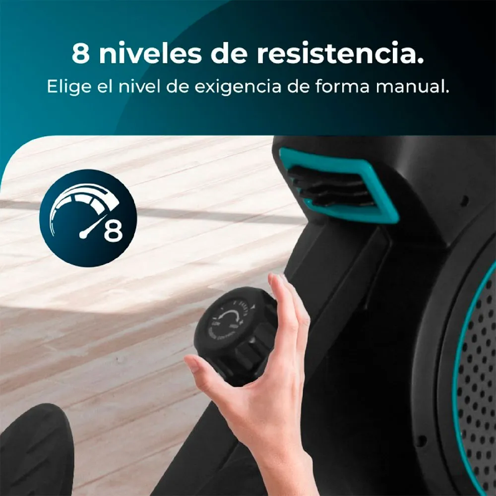 - 2-in-1 vastusjärjestelmä: yhdistää ilmanvastuksen ja magneettisen vastuksen. Tarjoaa magneettisen vastuksen keveyden, pehmeyden ja hiljaisuuden, mutta myös suuremman harjoittelun intensiteetin tuulenvastuksen ansiosta.