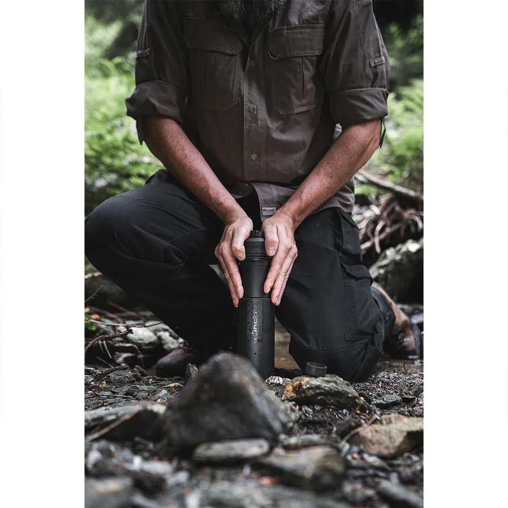 OnePress™ Global Protection antaa matkailijoille, seikkailijoille ja selviytyjille mahdollisuuden saada puhdasta juomavettä maailman kyseenalaisimmista vesilähteistä.