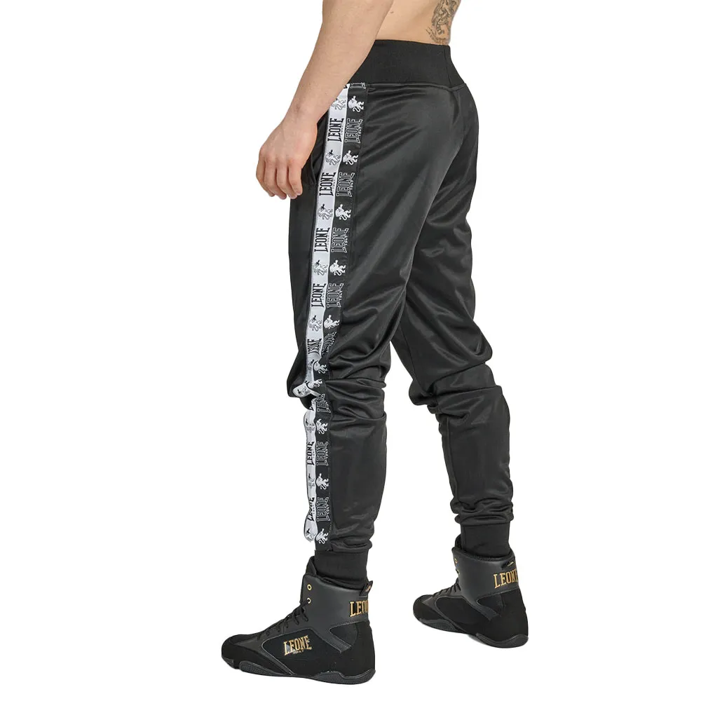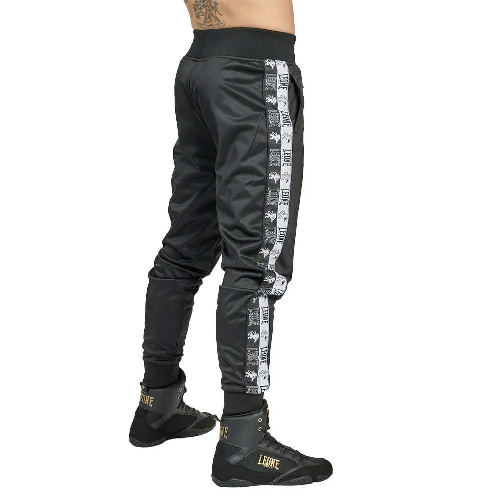Päästä sisäinen mestarisi valloilleen LEONE1947 Iconic -housuilla. Perinteisen tyylin ja modernin suorituskyvyn yhdistävät miesten treenihousut on valmistettu kevyestä, kestävästä polyesteristä äärimmäisen mukavuuden ja liikkumisvapauden takaamiseksi. Kapeneva malli, turvalliset lahkeensuut ja säädettävä vyötärönauha varmistavat täydellisen, urheilullisen siluetin. Rohkea sivubrändäys tekee vaikutuksen, ja kaksoistaskut lisäävät käytännöllisyyttä. Ihanteelliset salille tai kadulle, nämä housut ilmentävät legendan henkeä vuodesta 1947 lähtien, tarjoten tehokkaan yhdistelmän toiminnallisuutta ja ikonista italialaista muotoilua