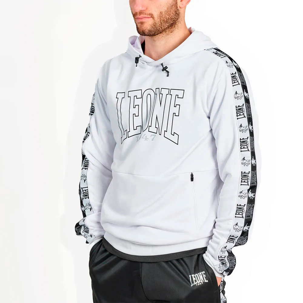 LEONE1947 Iconic -huppari valkoisena on klassinen ja tyylikäs miesten vaate, joka sopii täydellisesti rentoon tyyliin. Korkealaatuisista materiaaleista valmistettu huppari on sekä mukava että kestävä, joten se on loistava lisäys mihin tahansa vaatekaappiin. Ikonisessa muotoilussa on LEONE1947-logo näkyvästi edessä, mikä lisää vaatteeseen tyyliä ja hienostuneisuutta. Täydellinen viileille päiville tai kotona rentoutumiseen, tämä huppari on pakollinen jokaiselle modernille miehelle.