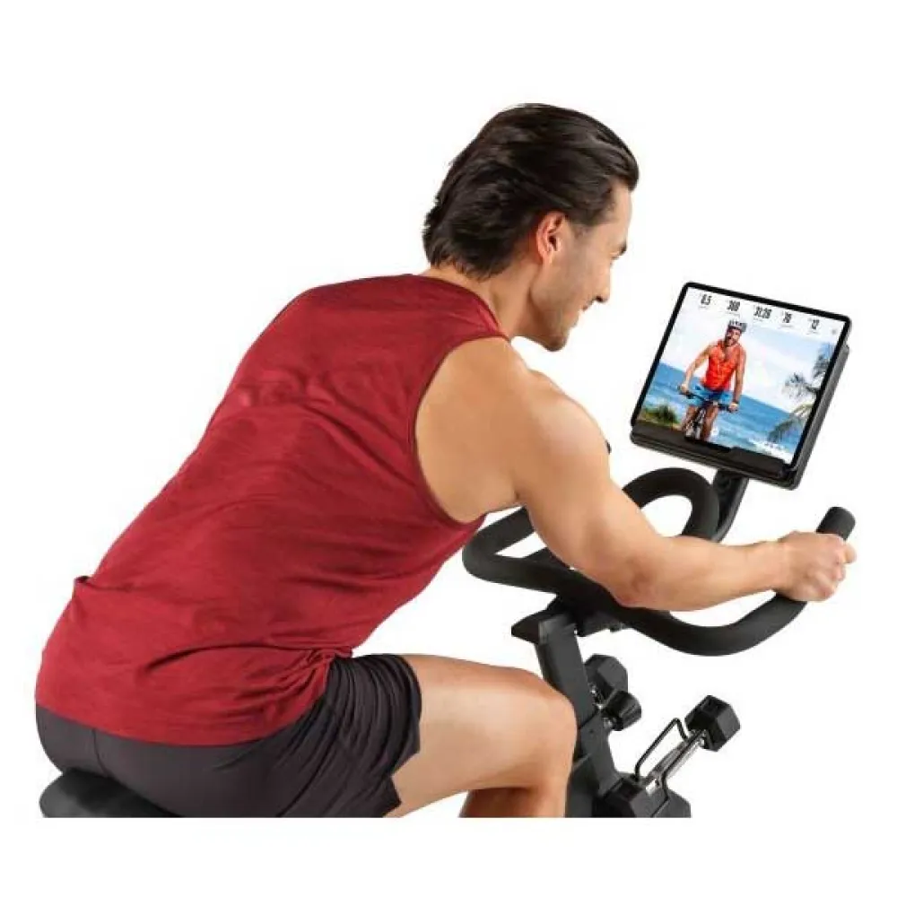 - Näe reaaliaikaiset harjoitustilastot selkeältä LCD-näytöltä. Tai käytä omaa laitettasi hyllyllä seurataksesi iFIT-valmentajia.
