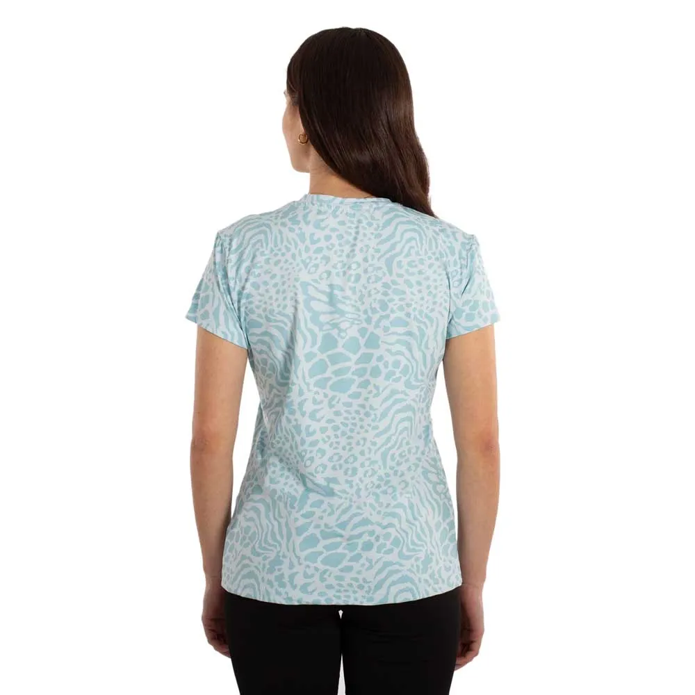 Monipuolinen tyyli: Moderni painettu kuvio yhdistettynä klassiseen pyöreään kaula-aukkoon ja lyhyisiin hihoihin tekee siitä täydellisen sekä urheiluun että vapaa-ajan käyttöön.