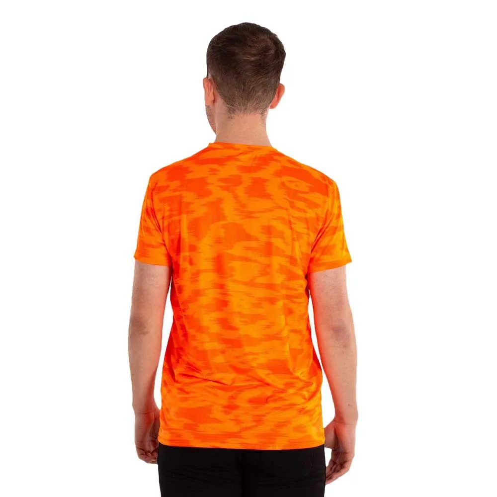 Tämä on tekninen T-paita, jossa on erottuva vesiprintti, lyhyet hihat ja klassinen pyöreä kaula-aukko. Se on suunniteltu erityisesti urheiluharjoitteluun, mutta myös antamaan urheilullisen ilmeen kesätyyliisi.