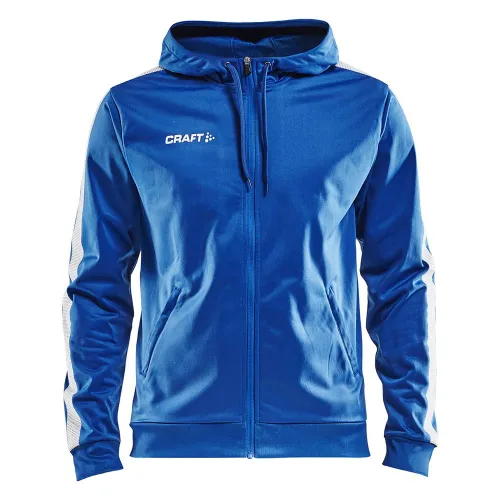 Veste à capuche confortable en polyester doux et fonctionnel, conçue pour les échauffements et les moments de détente hors terrain. Deux poches.