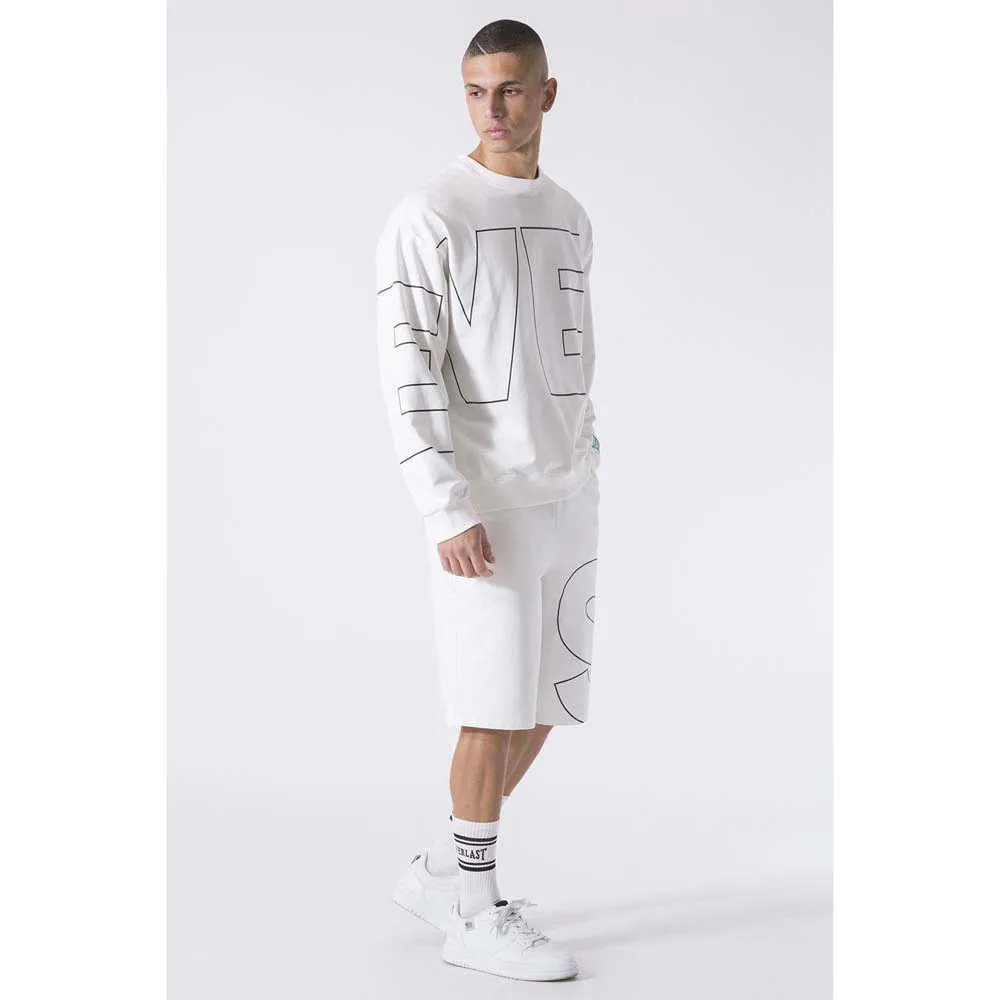 Crew-neck sweater made of comfortable ungauzed stretch fleece. Everlast macro logo graphic is printed in contrast on the sleeve and front. At the bottom of the sleeve the Everlast logo is embroidered in contrasting color going to complete the style details.