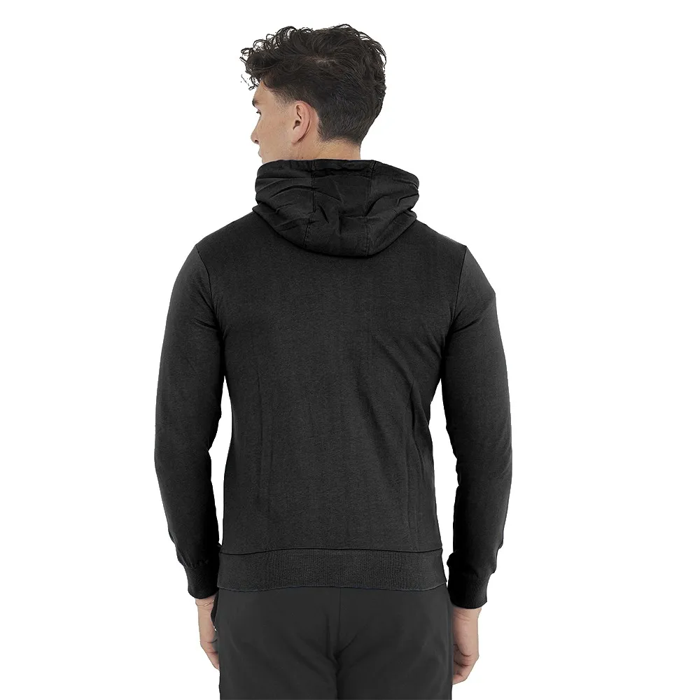 Le modèle présente une capuche intégrée avec cordon réglable, une fermeture frontale avec zip robuste et des poches latérales fonctionnelles.