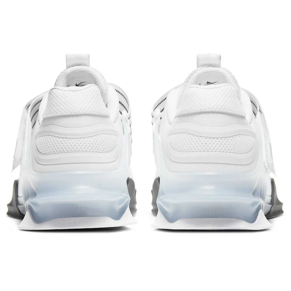 La Nike Savaleos attache votre pied à une base plate et large pour que vous vous sentiez stable et en sécurité lorsque vous êtes confronté à un poids important. La semelle intermédiaire rigide a un soulèvement au talon pour un transfert de puissance de pointe depuis le sol, pour aider à soutenir vos ensembles les plus explosifs.