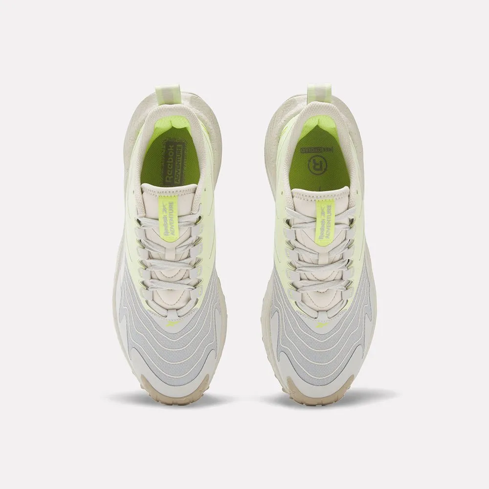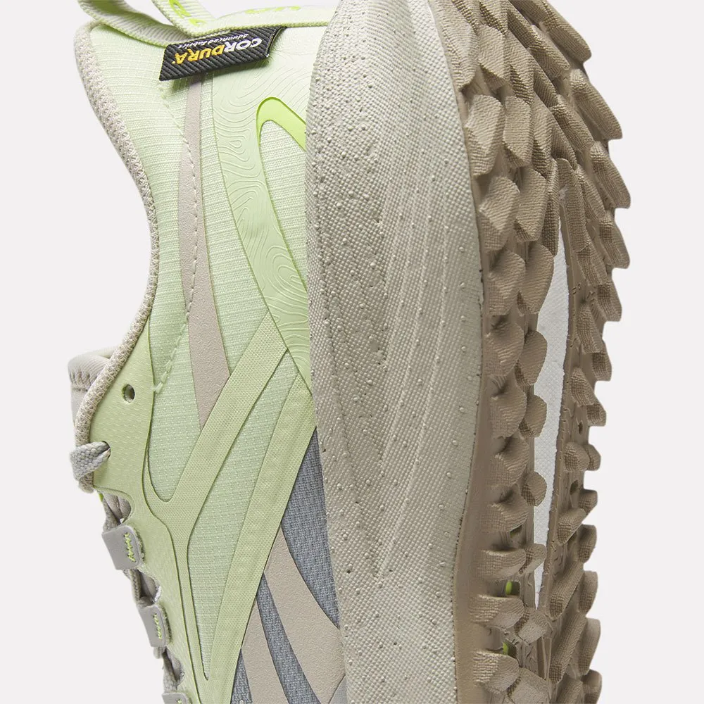 Préparez-vous à tous les terrains avec la Floatride Energy 5 Adventure. Faisant partie de notre initiative [REE]CYCLED qui utilise au moins 30 % de matériaux recyclés ou réutilisés, elle est dotée d´une tige CORDURA® recor™ qui résiste aux rochers, aux souches d´arbres et aux obstacles. La semelle intermédiaire en mousse Floatride Energy offre un amorti résilient et réactif, tandis qu´une semelle extérieure en caoutchouc de carbone améliore la traction.