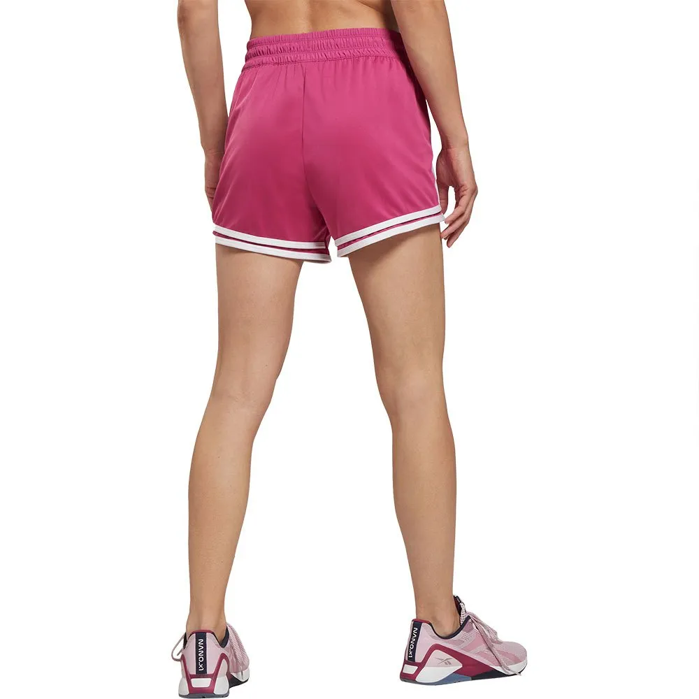 Vous n'avez pas besoin de retourner au cours de gym, mais vous pouvez revisiter le look old school avec ce short d'entraînement Reebok pour femme. La technologie Speedwick vous garde au sec sur l'elliptique ou le vélo. Une taille haute vous protège avec un ajustement sûr. La reliure contrastée ajoute une touche rétro.