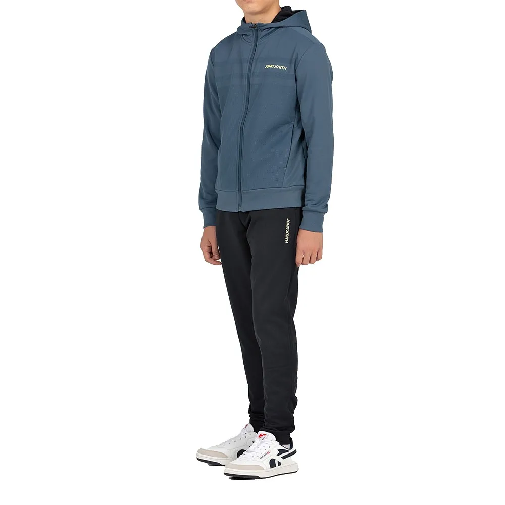 La giacca con cappuccio a maniche lunghe è il fulcro di questo dinamico set. Presenta una pratica chiusura con zip intera, che consente di indossarla e toglierla facilmente e di stratificare per adattarsi alle temperature variabili. Il vero punto di forza è l´interno spazzolato super morbido, che fornisce un accogliente strato di calore e una sensazione incredibilmente confortevole sulla pelle, rendendola una preferita istantanea per le giornate più fresche. Visivamente, la giacca si distingue con una stampa grafica geometrica audace e contemporanea sul davanti, che aggiunge un tocco di energia moderna che i ragazzi adoreranno sfoggiare. La funzionalità è integrata nel suo design, con pratiche tasche con zip perfette per riporre in sicurezza chiavi, un telefono o piccoli tesori. L´iconico logo aziendale John Smith è orgogliosamente esposto, fungendo da segno distintivo di qualità e autentica eredità atletica.