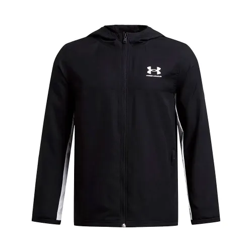 Preparati a tutto con la giacca Under Armour Rival Woven! Questa giacca elegante e funzionale, in un fresco colore Grigio Pioggia con dettagli in Azzurro Etere e Bianco, è perfetta per bambini attivi sempre in movimento.
