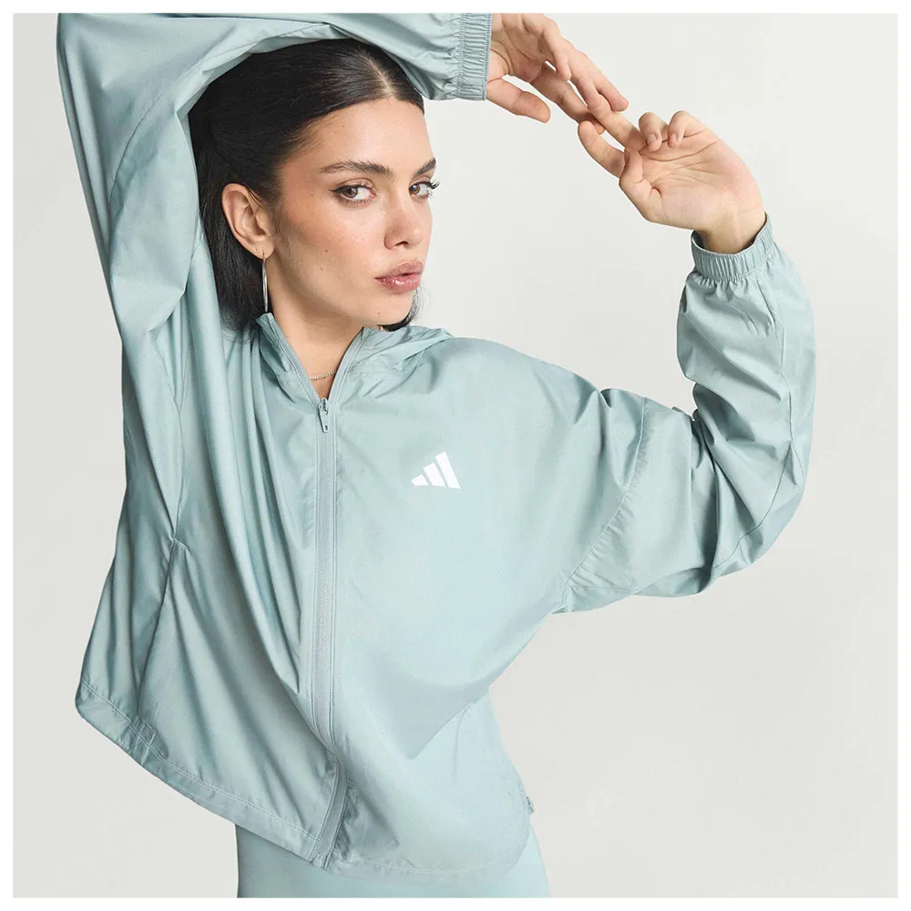Met zijzakken met rits en een gebogen zoom met trekkoord, kun je met deze adidas windbreaker de pasvorm aanpassen terwijl je benodigdheden dichtbij houdt.