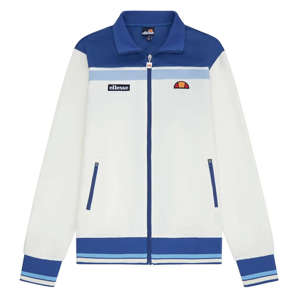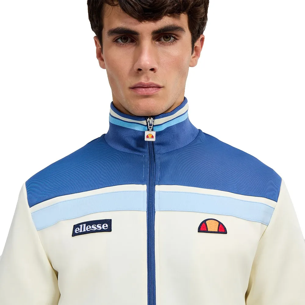 De Ellesse Vignola track jacket in gebroken wit/marineblauw is een stijlvolle sportkleding en perfect voor wie klassieke retrostijl waardeert.