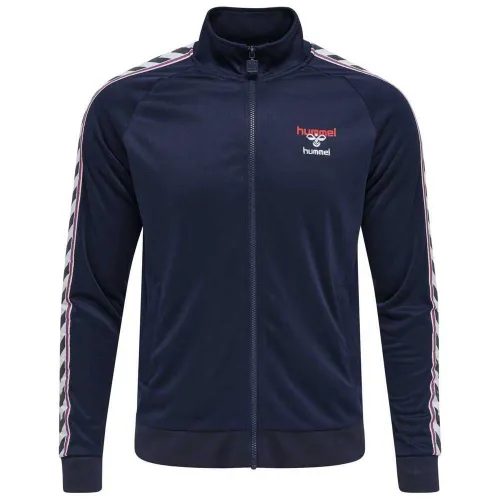Het hmlIC LERBY POLY ZIPJACK heeft een retrodesign dat onze rijke geschiedenis viert en heeft onze iconische chevronband op de mouwen en een klassiek logo in een mix van borduursels en print op de borst. Vervaardigd in een gerecyclede interlock-stof met metalen vezels die verbeterde duurzaamheid en rekbaarheid biedt. Dit hummel®-jack in een normale pasvorm heeft een hoge hals en strakke zijzakken met rits. Deze stijl is unisex en past bij mannen. Voor vrouwen raden we aan een maat kleiner te kiezen dan je normaal zou doen.