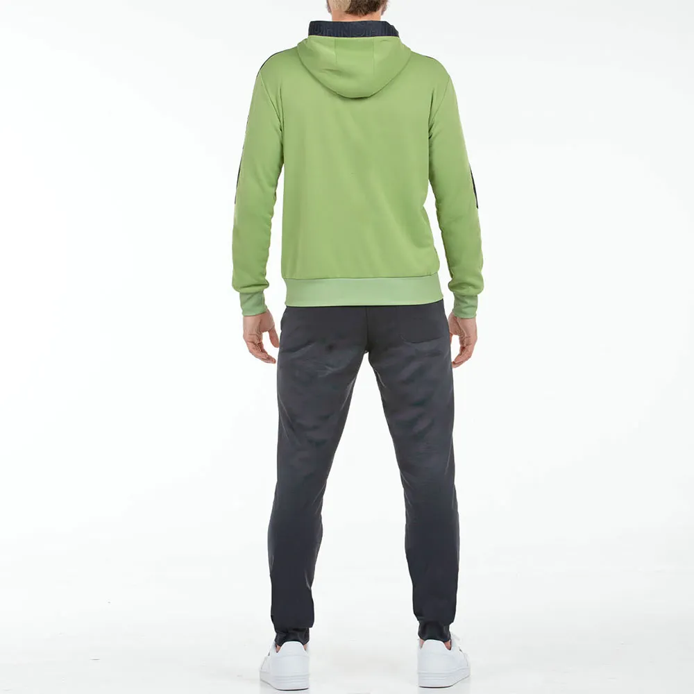 Dit herentrainingspak wordt gekenmerkt door zijn intelligente en praktische kenmerken. Het sweatshirt met capuchon is voorzien van een volledige ritssluiting, wat zorgt voor volledige veelzijdigheid in hoe u het draagt. Rits het omhoog voor warmte en bescherming tegen de elementen, of draag het open voor een meer ontspannen, gelaagde look. De geïntegreerde capuchon biedt extra bedekking wanneer u die nodig heeft, terwijl de veilige zijzakken met rits een veilige plek bieden om uw essentiële spullen zoals uw telefoon, sleutels en portemonnee op te bergen, of u nu onderweg bent of in de sportschool.