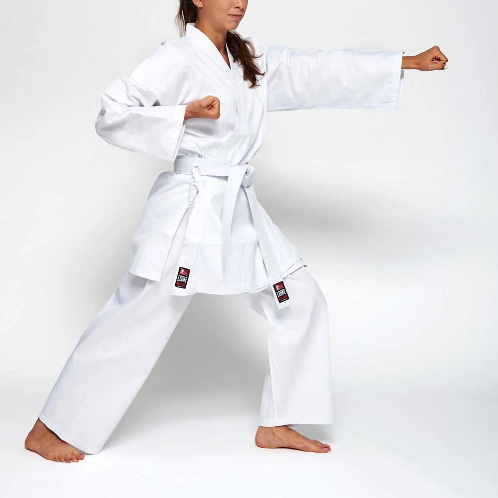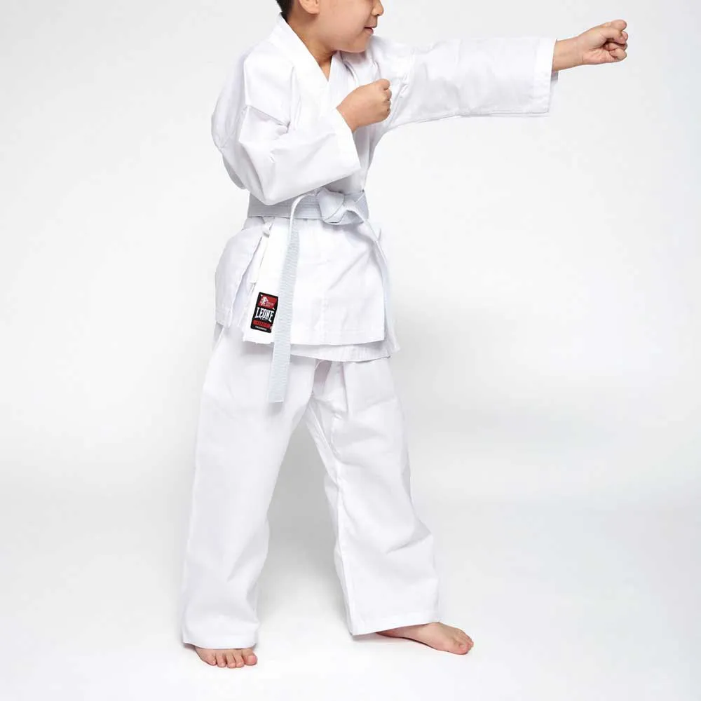 Een groot nieuws in het panorama van Leone1947 is de Karategi AB400 voor volwassenen en kinderen. Het uniform is gemaakt van katoen en polyester, deze samenstelling maakt het tegelijkertijd licht, zacht en duurzaam. Het is een ideale kimono voor kinderen en beginners, atleten die voor het eerst de wereld van karate benaderen. Samengesteld uit jas en broek met elastische tailleband. Eenvoudig ontwerp met geborduurde Leone1947 logo´s, verfraaid met een gestikte label. De witte band is inbegrepen.