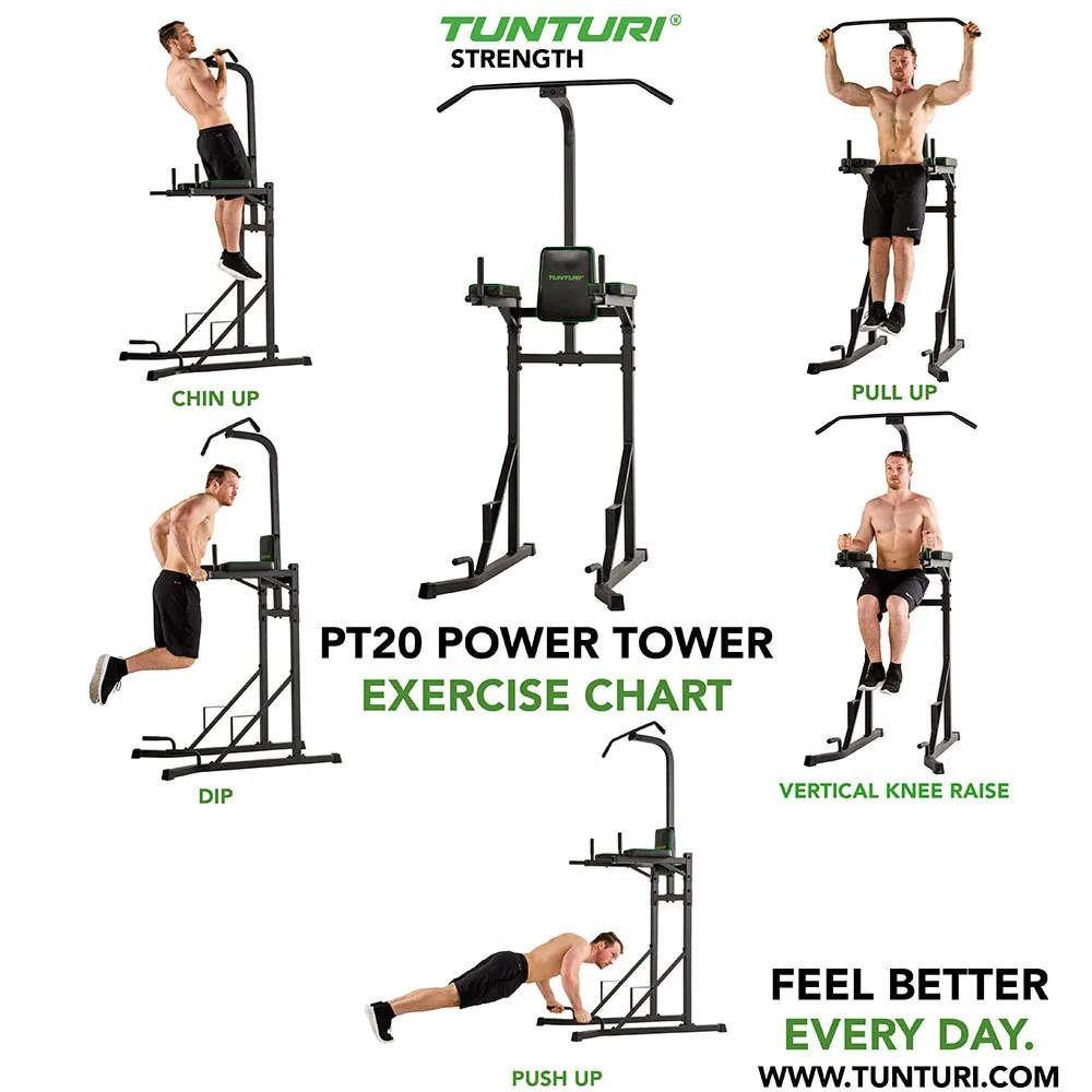 Het mooie van de Tunturi Power Tower PT20 is dat je voor een intensieve work-out geen gewichten of ingewikkelde apparatuur nodig hebt.