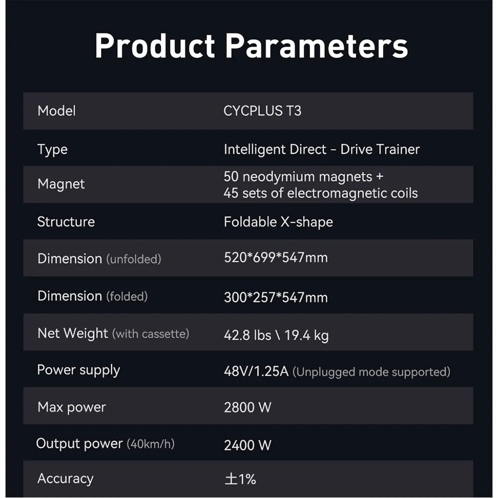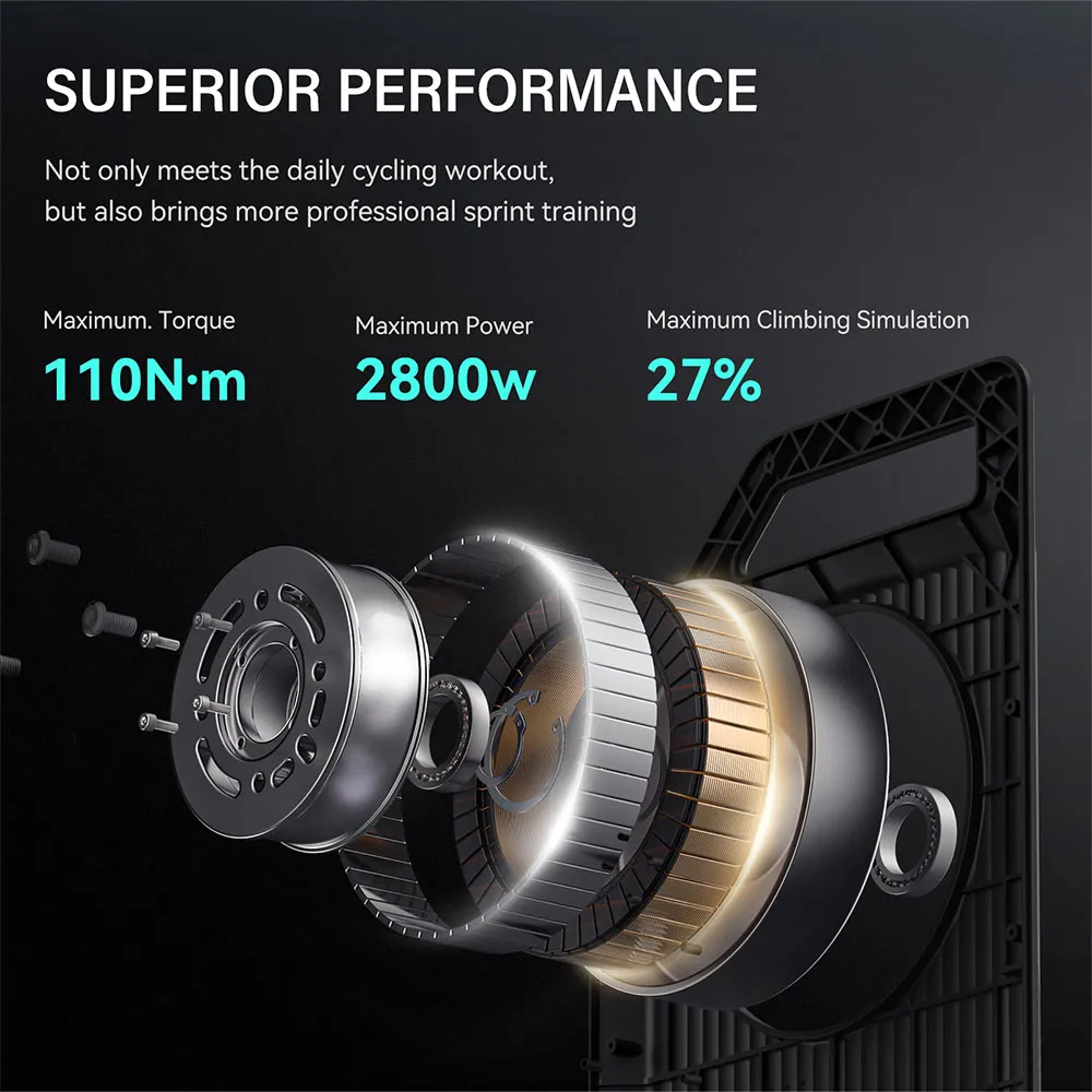 Med et maksimalt dreiemoment på 110 N.m og muligheten til å simulere opptil 27 % stigning, gir CYCPLUS T3 sykkelrulle en realistisk utendørssyklingopplevelse med presis treghet.