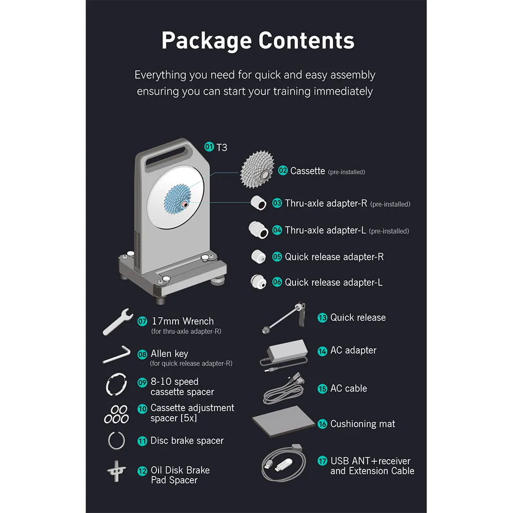 Fleksibel og enkel konfigurasjon: T3 støtter hastigheter fra 8 til 12, slik at du kan legge til din foretrukne kassett til rullen for en fullstendig tilpasset treningsopplevelse.