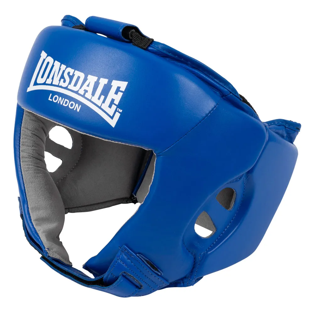 Denne CE-sertifiserte hodestøtten fra Lonsdale ble spesiallaget for profesjonelle konkurranser i den tyske bokseorganisasjonen (DBV) og er lisensiert av DBV. Størrelsesinformasjonen er tydelig synlig på baksiden. Hodestøtten er håndlaget av høykvalitets okseskinn og har øre-, hake- og kinnbeinsbeskyttelse samt flerlags polstring for høy klemmeabsorbsjon. Velcro-lukningene på haken og baksiden av hodet sikrer individuell tilpasning til alle hodeformer.
