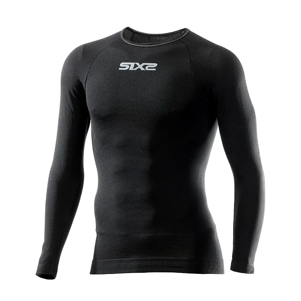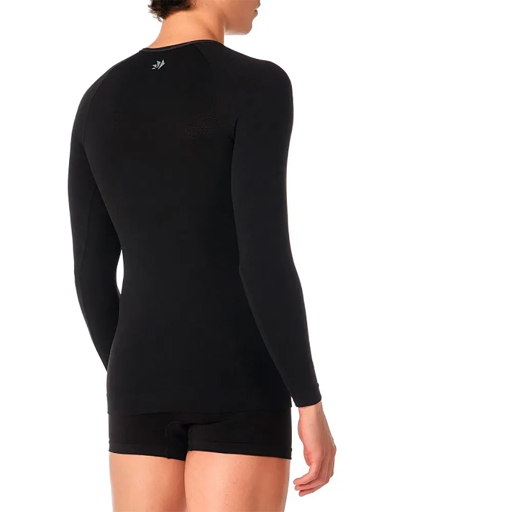 SIXS langermet jersey med rund hals laget av Carbon Underwear-stoffet som lar huden puste og sikrer termoregulering av kroppen i alle værforhold (utendørs eller innendørs). Den lange ermen omslutter alle deler av armen for å holde huden frisk og ligger mellom huden og et toppplagg.