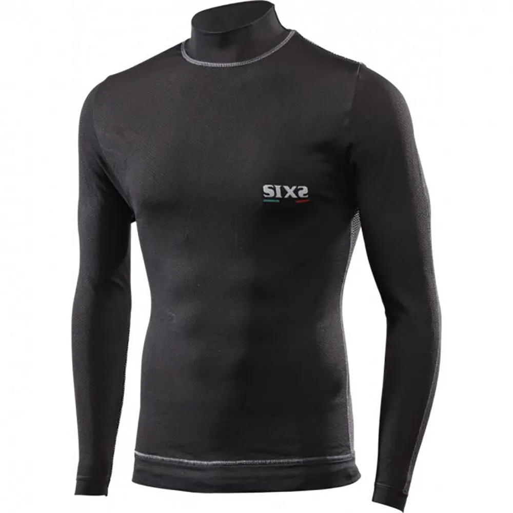 Langermet turtleneck jersey med vindtett WindShell Carbon Undertøy ® beskyttelse som er pustende og Termostat i all slags vær. SIXS Air Shield teknologi beskytter overkroppen fra kald luft foran. Et tynt lag av pustende vindtett fiber skaper en mikroluftpute som beskytter kroppen uten å forårsake den klassiske "drivhuseffekten" som øker svette. Den mock turtleneck krage beskytter halsen mot plutselige temperaturendringer og kule utkast. Ideell for utendørsaktiviteter.