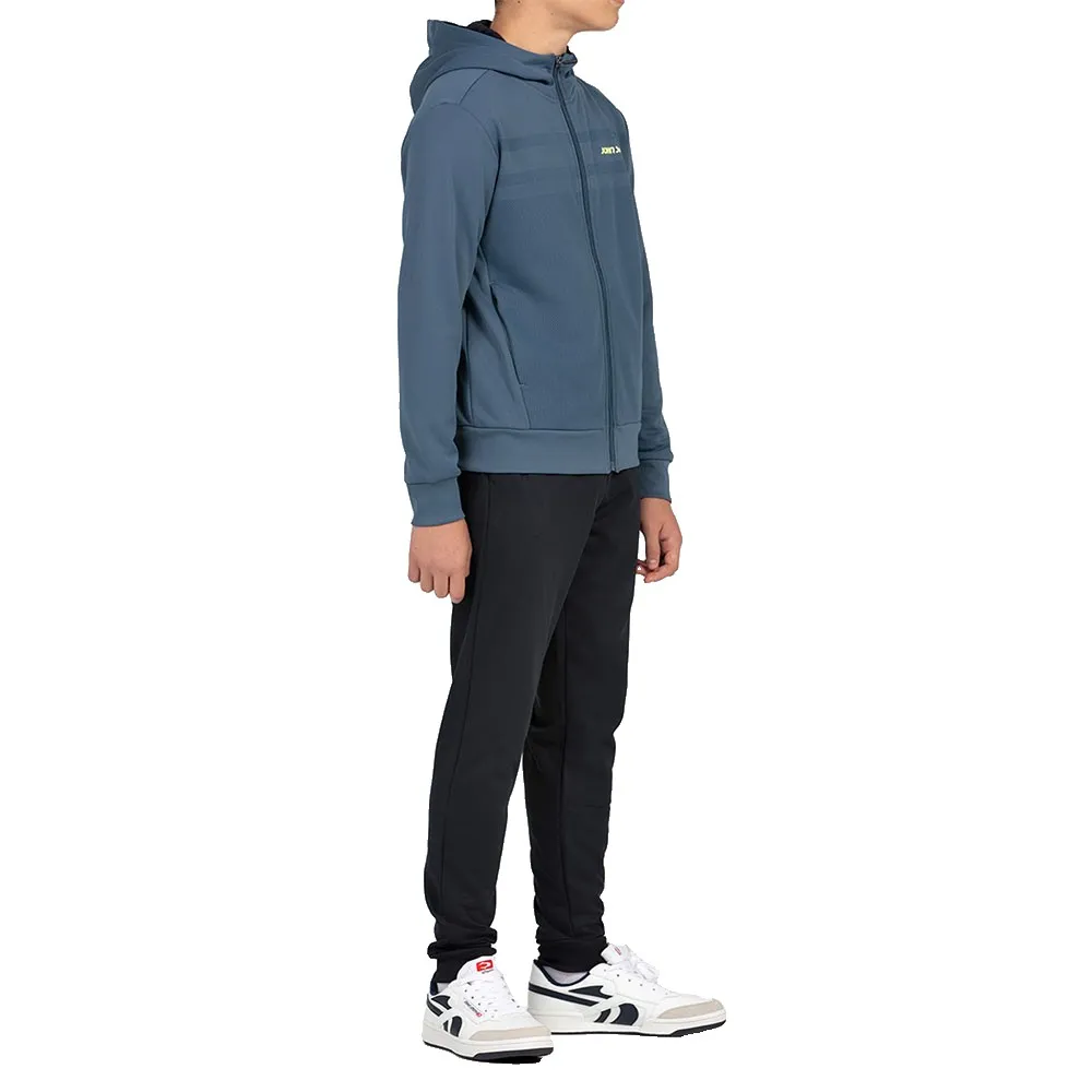 Bluza z długim rękawem i kapturem stanowi centralny punkt tego dynamicznego zestawu. Posiada praktyczne zapięcie na zamek błyskawiczny na całej długości, co ułatwia zakładanie i zdejmowanie oraz warstwowanie, aby dostosować się do zmieniających się temperatur. Prawdziwym atutem jest supermiękkie, szczotkowane wnętrze, które zapewnia przytulną warstwę ciepła i niezwykle komfortowe uczucie na skórze, czyniąc go natychmiastowym faworytem na chłodniejsze dni. Wizualnie bluza wyróżnia się odważnym i nowoczesnym geometrycznym nadrukiem z przodu, dodającym nutę nowoczesnej energii, którą chłopcy pokochają pokazywać. Funkcjonalność jest wpisana w jej projekt, z bezpiecznymi kieszeniami na zamek błyskawiczny, idealnymi do bezpiecznego przechowywania kluczy, telefonu lub małych skarbów. Kultowe logo korporacyjne John Smith jest dumnie wyeksponowane, służąc jako znak jakości i autentycznego sportowego dziedzictwa.